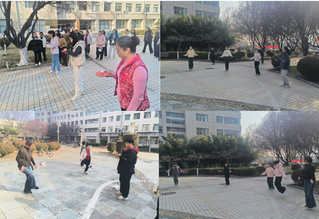 在“轻舞飞扬·踢毽子”区域,女教职工们轻快地踢动毽子,彩色的毽羽在空中飞舞,大家舒展身体、放松心情,现场笑声不断。“跃动巾帼·单人跳绳”环节,大家手握跳绳,在跳跃中释放活力、愉悦身心。“初心同行·平衡运球”趣味十足,参与者手持贴有精美节日贴纸的乒乓球拍,托着彩色乒乓球绕行路障,在轻松挑战中感受专注与平衡的乐趣。